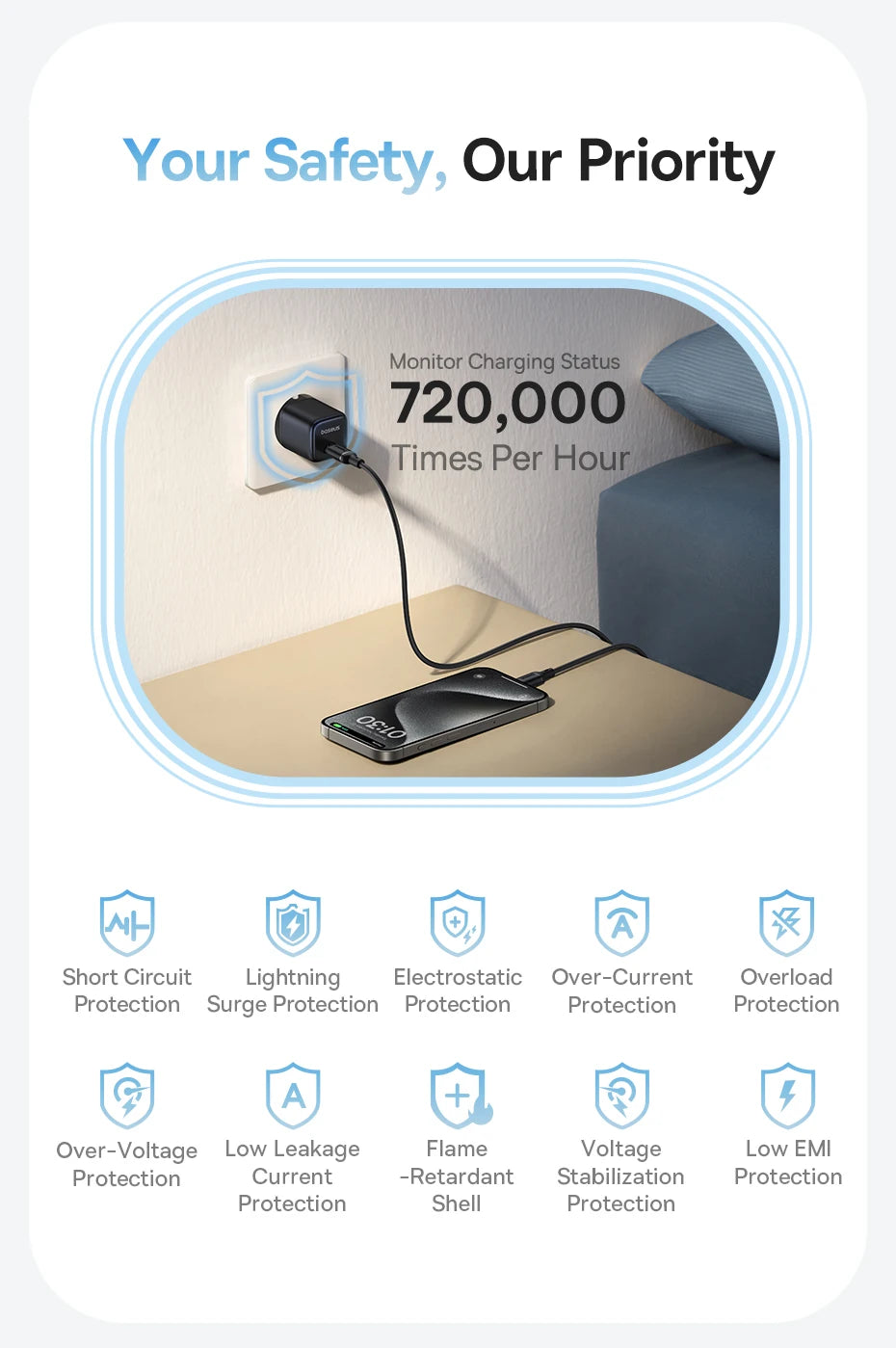 Baseus 45W PD Charger For iPhone 17 16 15 Pro Max Samsung Galaxy Fast Charger GaN Charger USB C Charger Portable Phone Charger